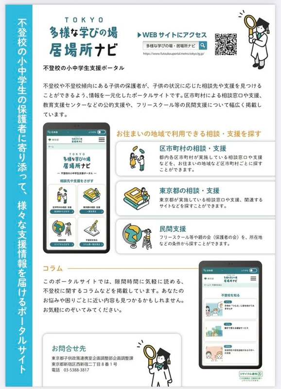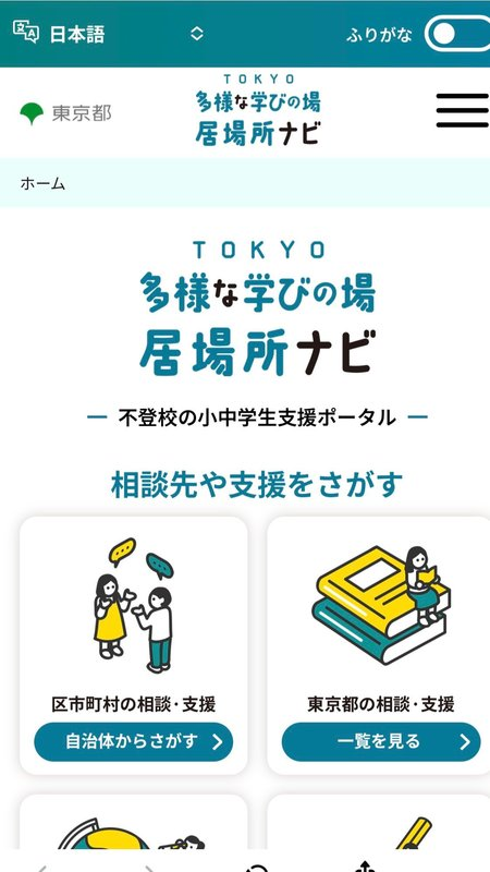 「TOKYO多様な学びの場・居場所ナビ―不登校の小中学生支援ポータル」(ちょっとながい💦)