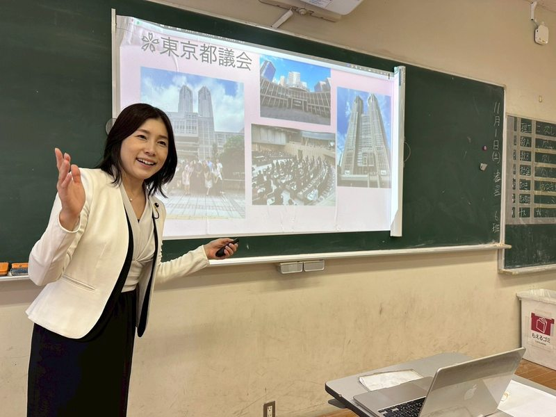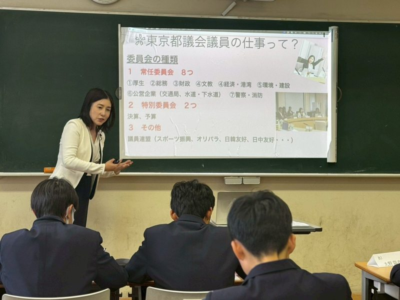 先日、日本学園の中学2年生を対象に「あつき恵み教室」にて、「都議会議員の仕事とは?」というテーマで職業紹介の授業を行いました。