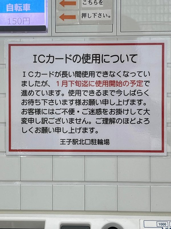 新しい券売機が設置されるまで、あと2か月ほどの間、ご不便をおかけいたしますが、現金での精算にご協力をお願いいたします。
