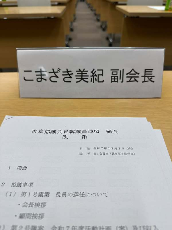 この度、東京都議会日韓議員連盟の副会長を拝命いたしました。