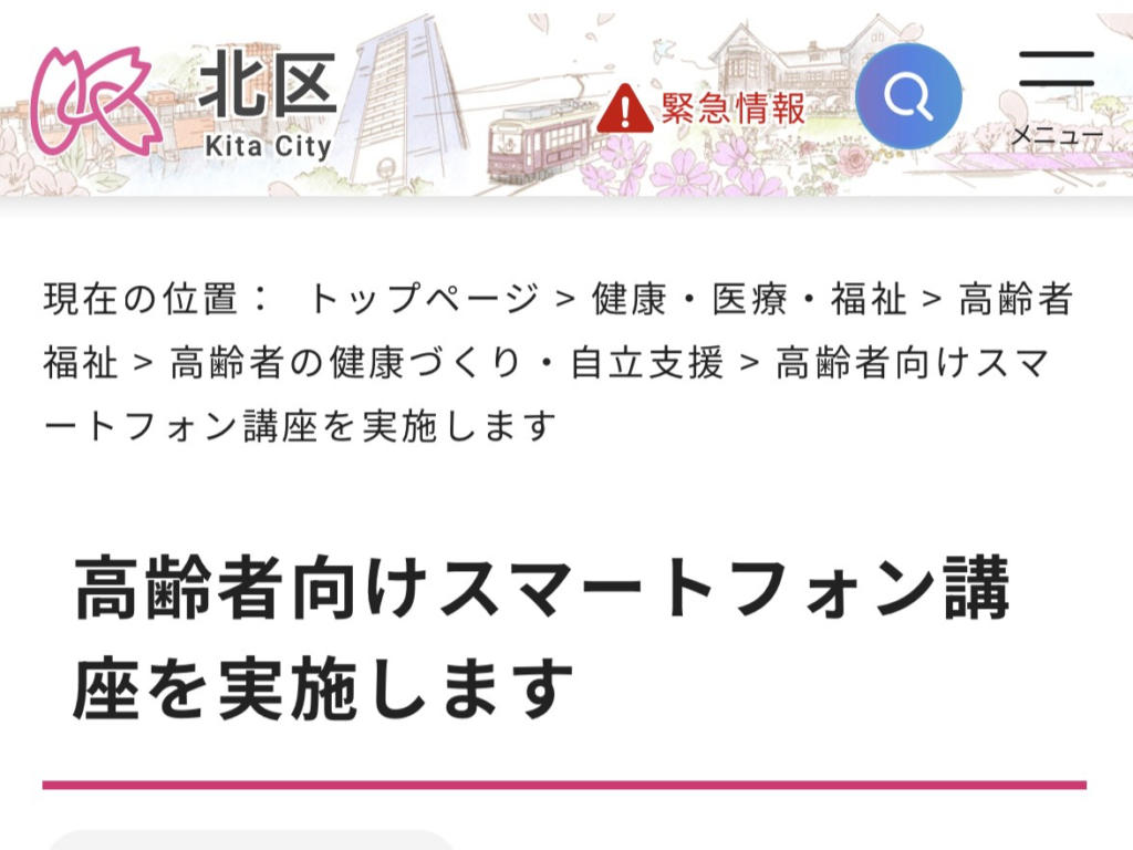 東京都が令和7年度から本格展開している「高齢者のためのスマートフォン活用支援事業」を活用し、北区はもとより、都内の複数区市(杉並区、新宿区、世田谷区、豊島区等)で実施しています。